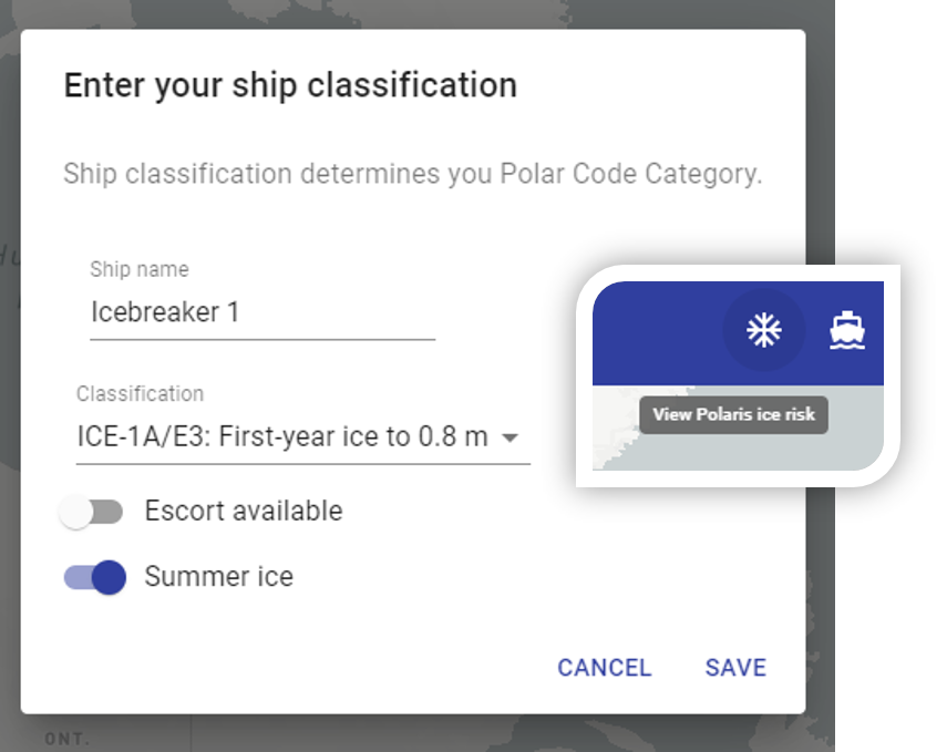 Download latest ice conditions, request new updates while at sea, or pre-download before voyage.